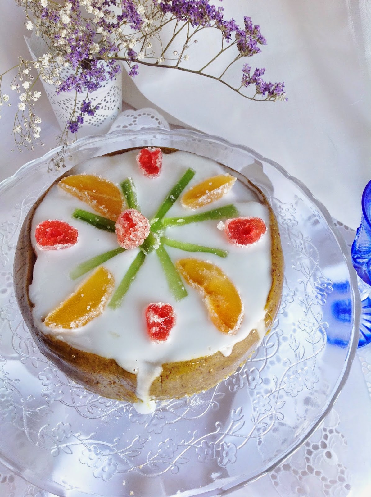 - Decorar con las frutas confitadas y volver a meter en el frigo durante otras 2 horas o toda la noche.