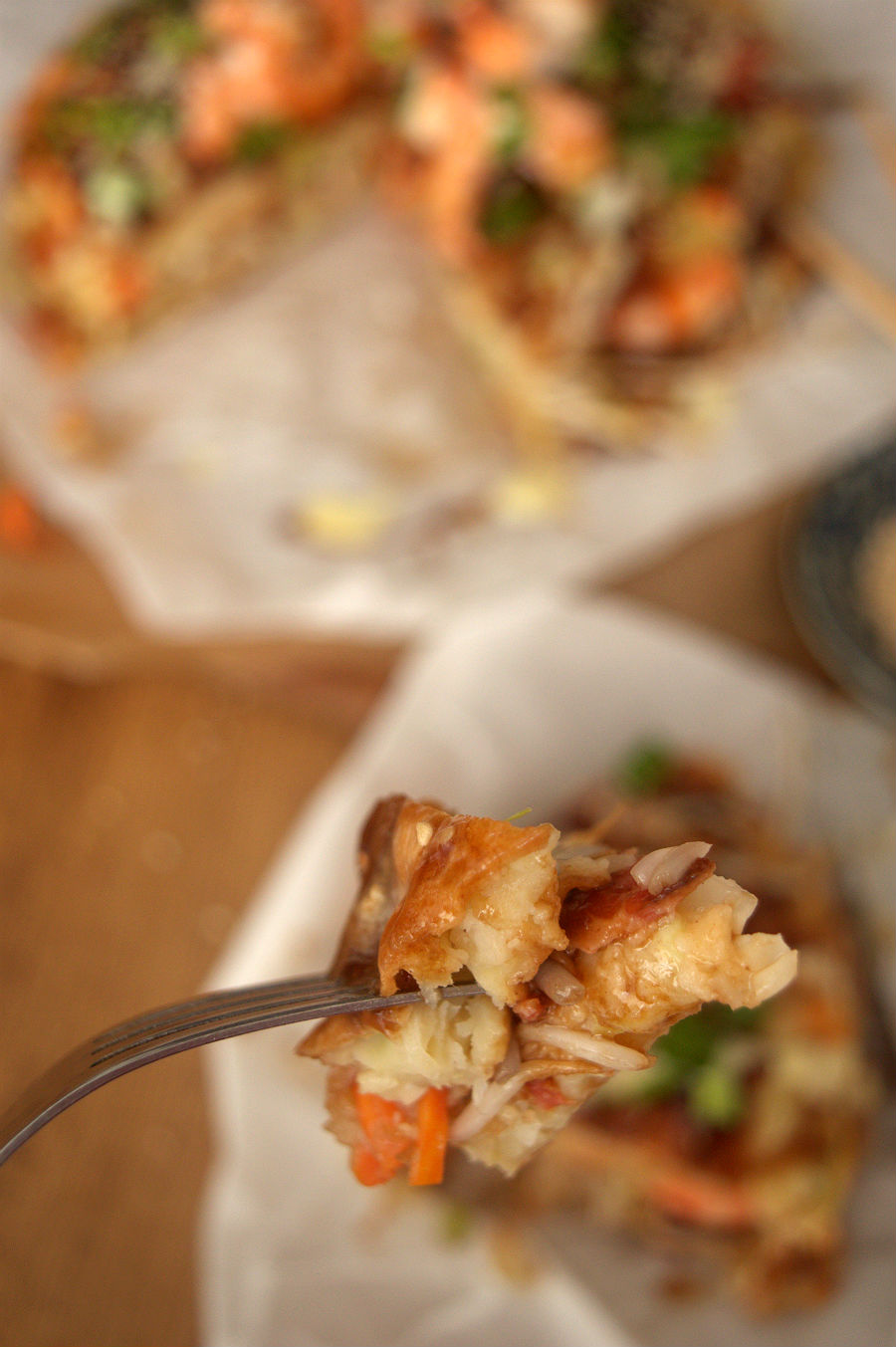 Le llaman pizza porque tiene forma de pizza, y cada cual le echa lo que quiere, pero es más un pancake que una pizza.