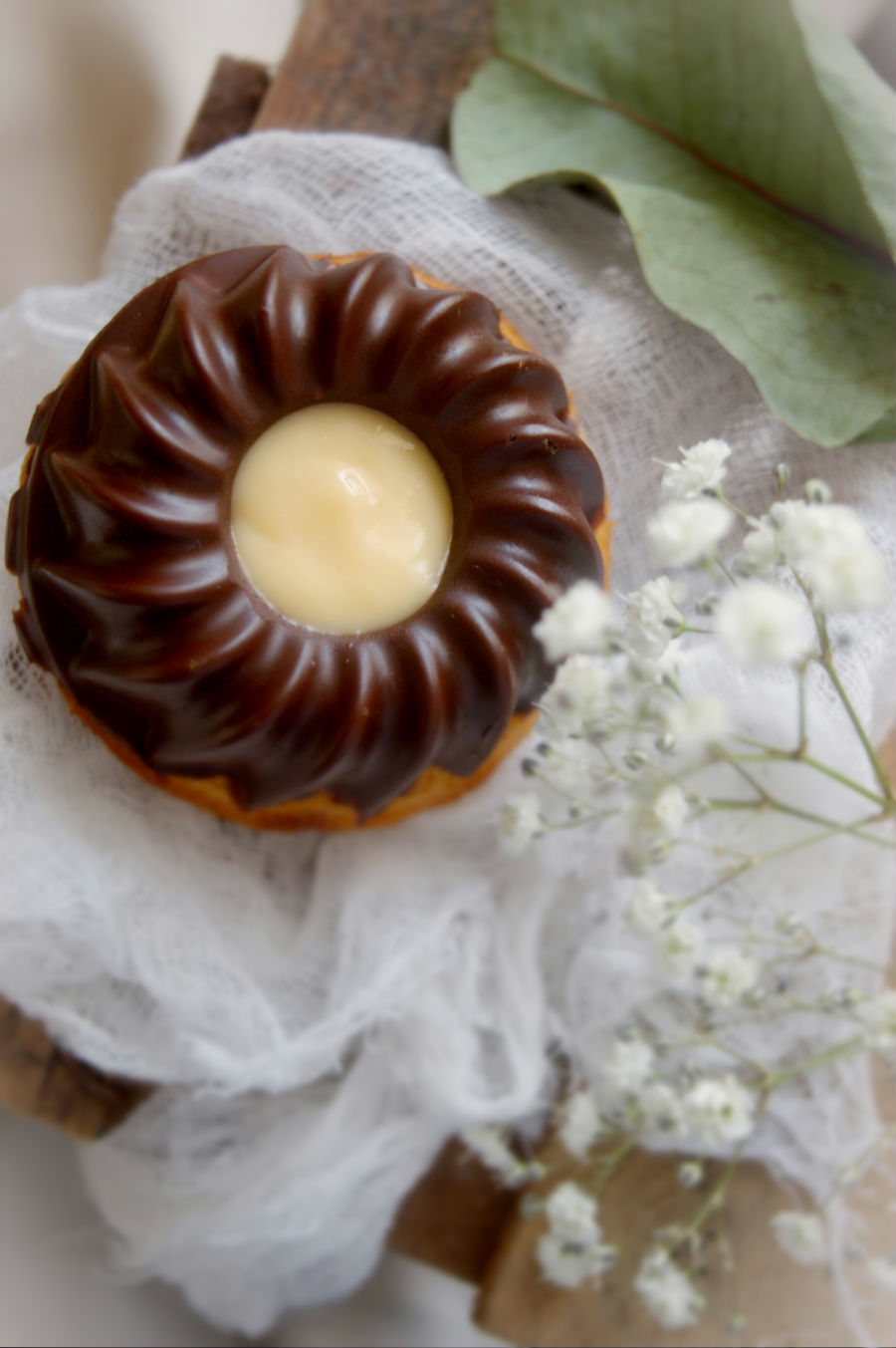 - Place mini bundts in the molds again, and gently press so the chocolate cover the whole cake.