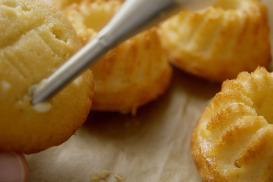 - Fill the mini bundts doing some holes in the bottom part with the nozzle.